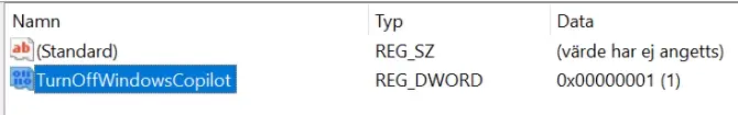 - I WindowsCopilot-mappen, skapa ett DWORD (32-bit) Value och döp det till ”TurnOffWindowsCopilot”