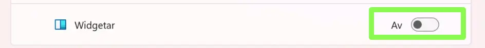 - Under ”Objekt i aktivitetsfältet” stänger du av ”Widgetar”